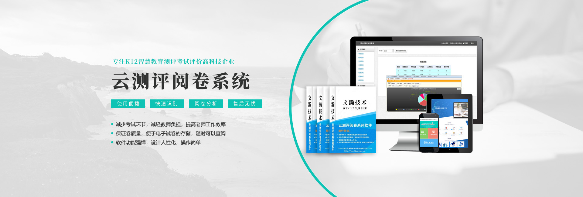 河北文瀚智考信息技術有限公司是一家專注教育的科技創(chuàng)新公司。本公司主營四大板塊產(chǎn)品:網(wǎng)上閱卷系統(tǒng)、光標閱讀機、答題卡和互動觸控液晶一體機。公司在數(shù)據(jù)處理產(chǎn)品領域(OMR)推出了一系列具有快捷,簡便,實用產(chǎn)品,···